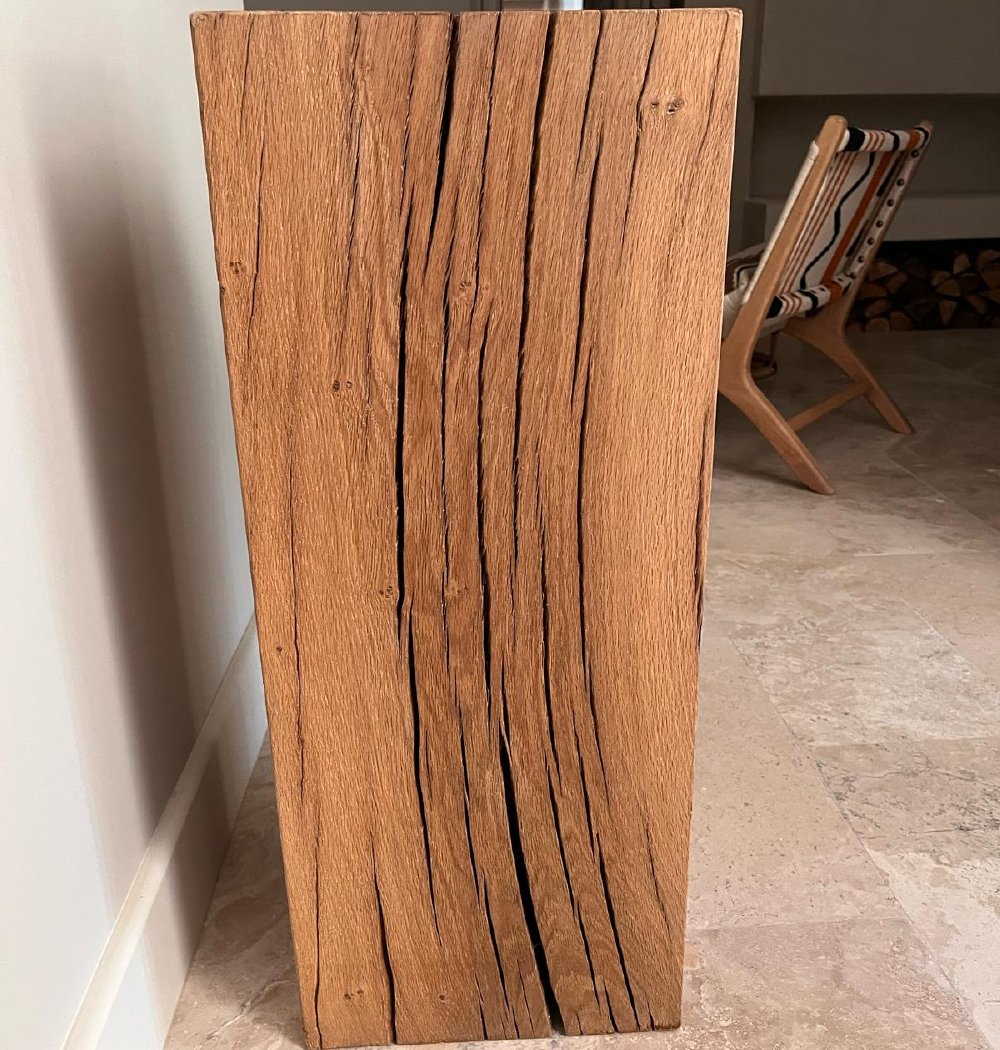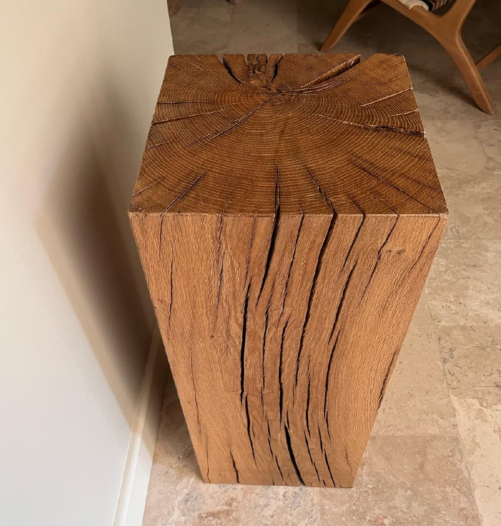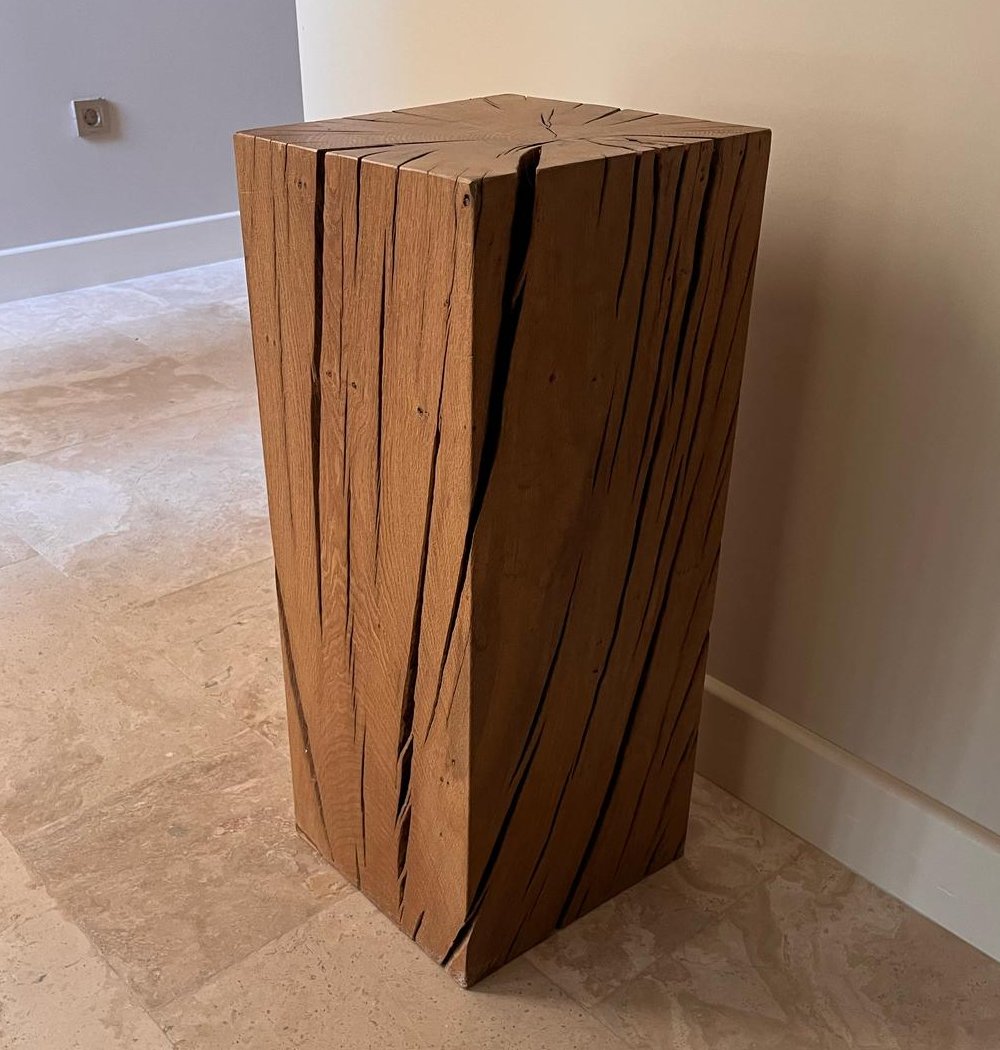 Silinmiş Yüzeyli keskin köşeli Meşe ağacından kaide ölçüleri 35*35 h=90 cm .En az 150 yıl önce kesilmiş yaklaşık 100 yıl da eski evlerde ve serenderlerde kullanılmış ağaçlardan elde edilmiş ürünümüzün kendine has çatlak ve doğal dokularıyla sergilemeye veya kendi başına bir sergi unsuru olmaya uygun bir üründür.